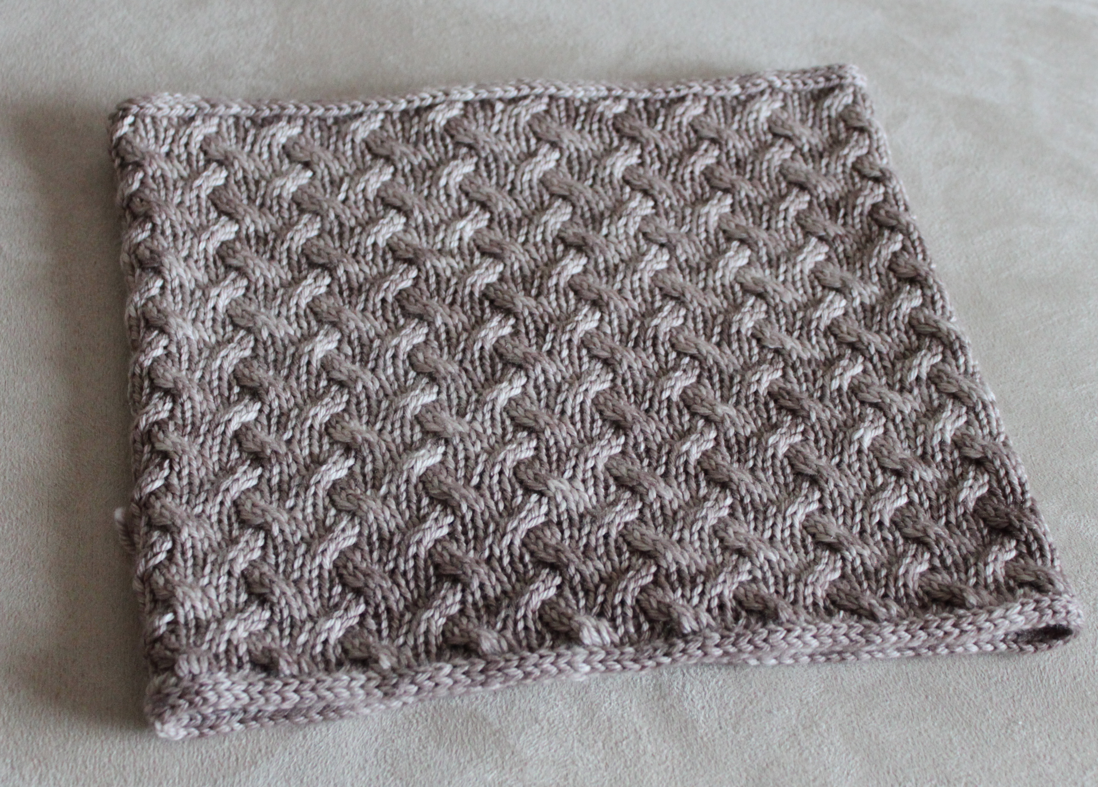 The Royal Cowl is made up of alternating cable stitches which creates a dense, textured, and warm fabric. The pattern also uses a new cast on technique and a new bind off. The i-cord cast on and the i-cord bind off each make a formal, structured bottom and top edge, making this a truly royal looking cowl! I love these neat and tidy, symmetrical edges. The pattern contains easy to follow instructions for the cast on and bind off. It also includes a photo tutorial for grafting the i-cords ends making the seam on each truly invisible. Watch for the tutorial on this blog in the coming weeks.
