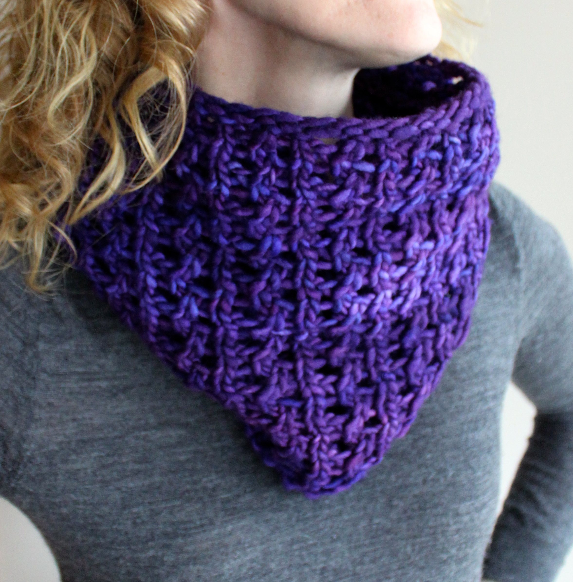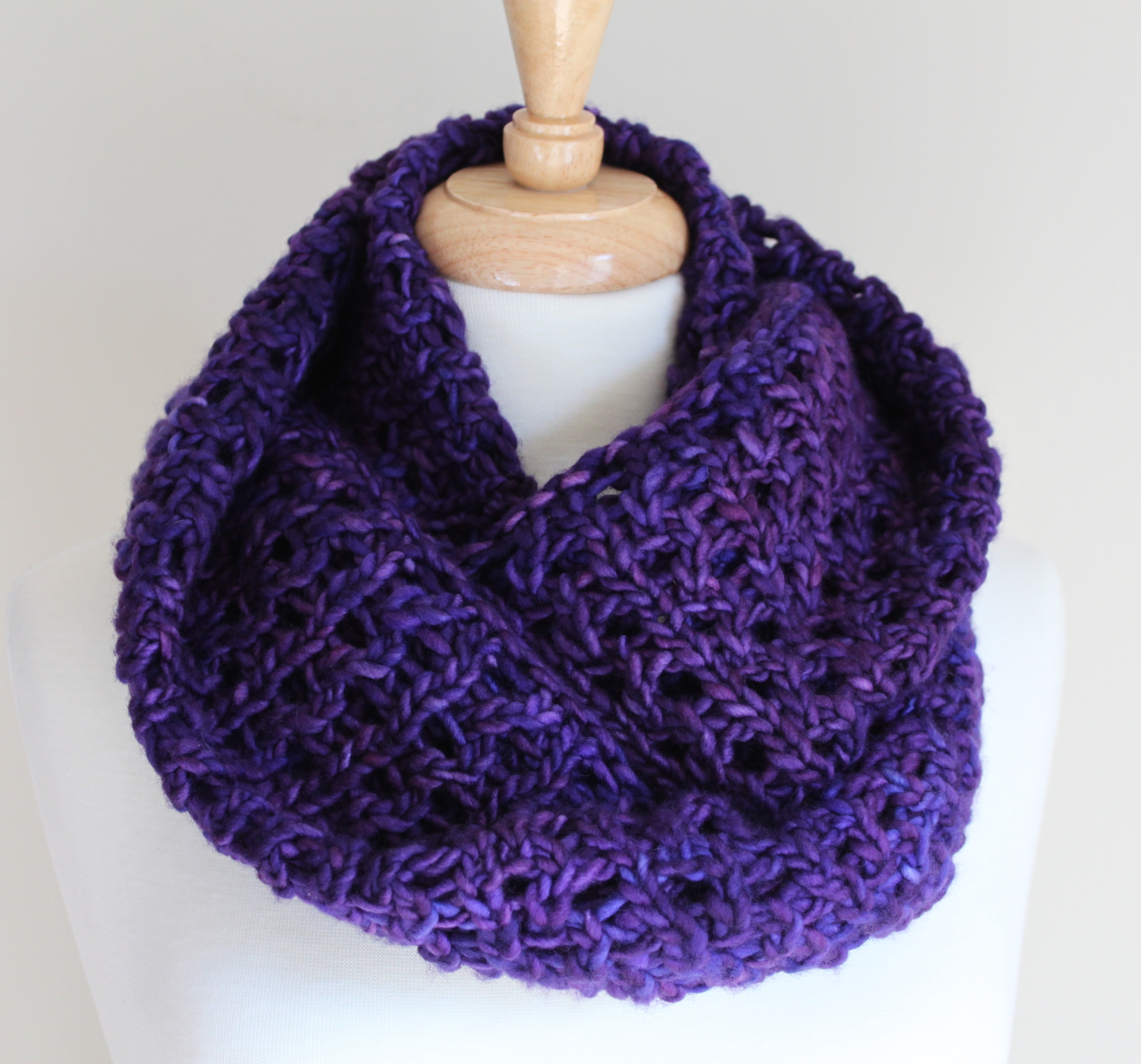 The Lengthy Lace Scarf has a new sister! A sister pattern, that is. The Bulky Lace Cowl is closely related because it uses the same lace stitch, is worked in a bulky yarn on large needles, and is a quick and easy knit.